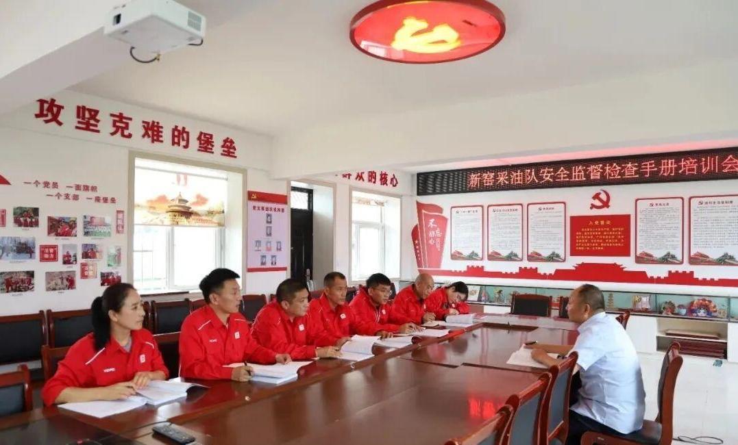 南泥湾采油厂新窑采油队组织学习《安全指导手册》。潘燕华/摄