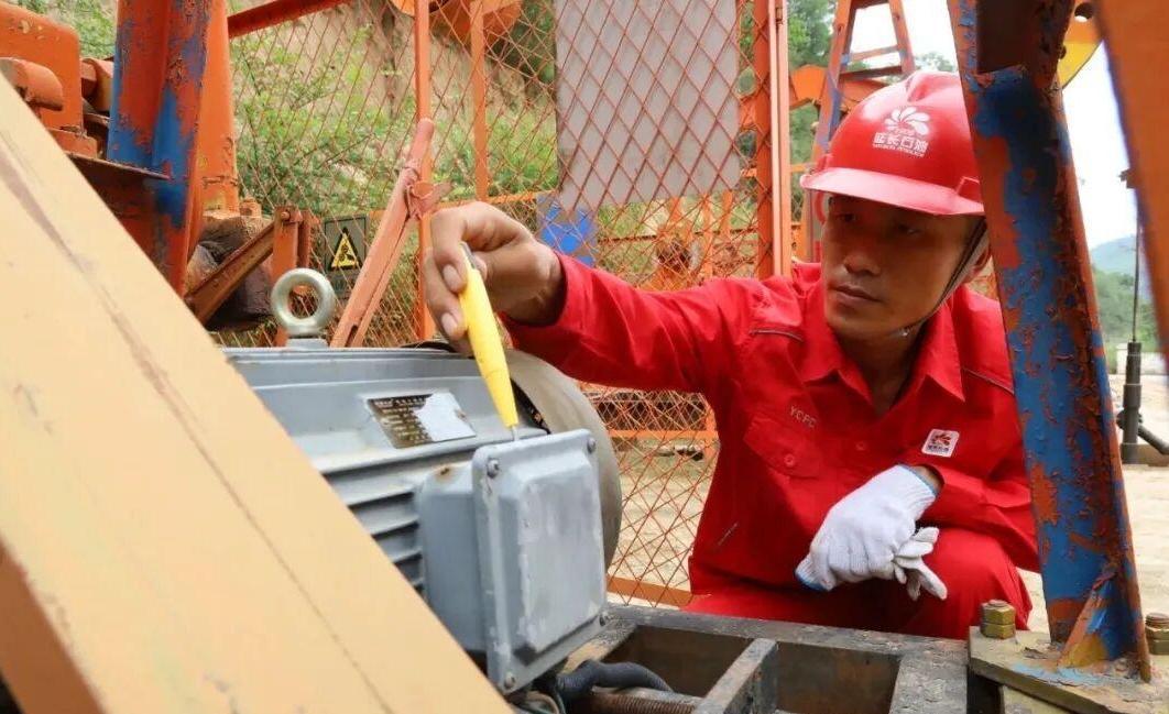 南泥湾采油厂新窑采油队采油工余耀宏在松699井场,对照《安全检查表》仔细检查电动机。贺杰/摄