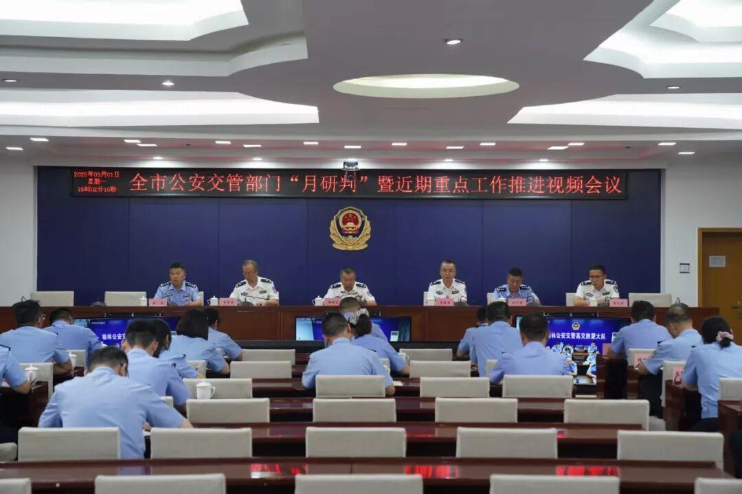 近日,榆林市公安局交管支队召开全市公安交管部门“月研判”暨重点工作推进会,传达贯彻近期省市系列会议精神,认真落实各级领导重要指示精神,研判分析当前交通安全形势,调度推进夏秋季交通安全大整治行动,安排部署交通安保、事故预防等重点工作任务。