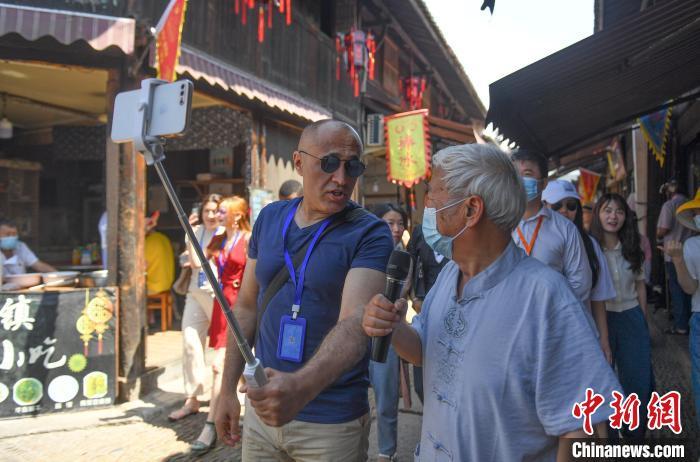 阿马尔(左)在义乌佛堂老街参访。 王刚 摄