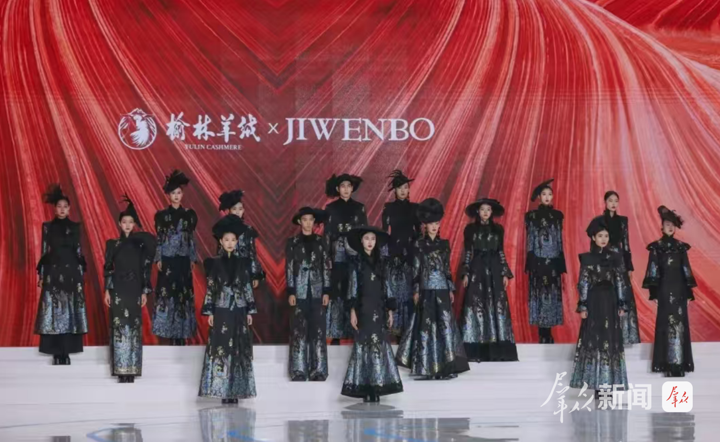 颁奖礼现场,中国金顶奖设计师计文波携手榆林羊绒带来“雪舞金朝”联名大秀,以《沁园春·雪》意境为灵感,将榆林地域文化与羊绒材质深度融合,为观众带来一场视觉盛宴,也拉开了决赛作品展示的序幕。