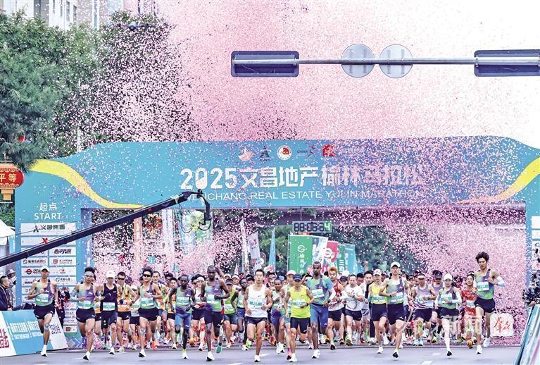 9月21日7时30分,2025文昌地产榆林马拉松鸣枪开跑。 群众新闻记者 张江舟摄