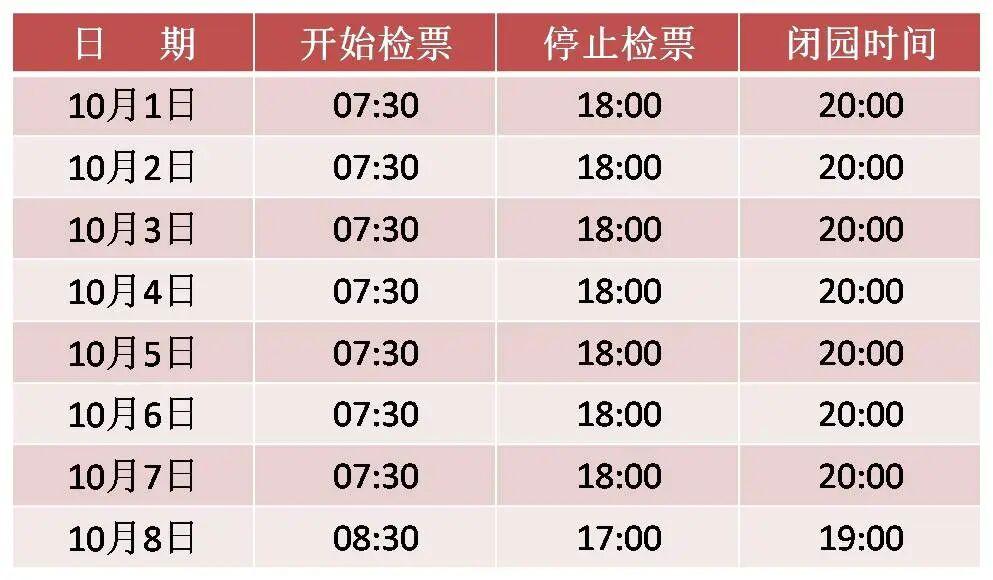 国庆假期期间10月1日至7日实行延时惠民开放,博物院开始检票时间提前至7:30,停止检票时间推迟至18:00(闭园时间为20:00)。10月8日开始检票时间为8:30,停止检票时间为17:00(闭园时间为19:00)。