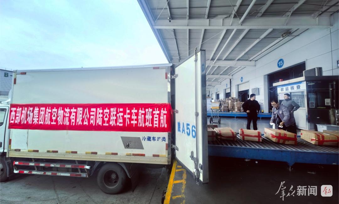 9月24日清晨,一辆满载西北特色农产品的冷链卡车抵达西安咸阳国际机场航空货站,随后这些农产品搭载飞往东南沿海城市的航班,标志着“陆空联运”卡车航班在西安首航。