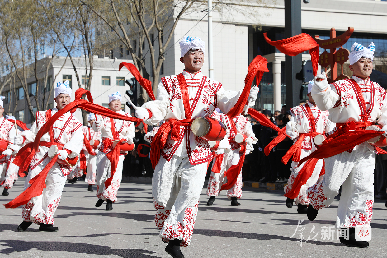 目前,全区超过1.2万名学生利用体育课、课间操时间接受腰鼓培训,300余名校园骨干崭露头角,非遗传承的“青春方阵”正加速成型。青少年们将以击鼓腾跃之姿,把深植于黄土高原的集体记忆转化为新时代的文化自信,在鼓点中感受力量之美,在队列变化中体会协作之魂,建立起对本土文化的强烈认同。