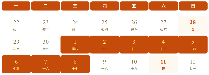 2025年国庆节、中秋节期间