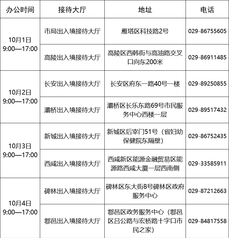 同时,为满足广大市民十一假期期间办证需求,我市各级出入境接待大厅将于10月1日至10月8日期间有序开设办证专场。请您合理选择时间和地点办理出入境证件。