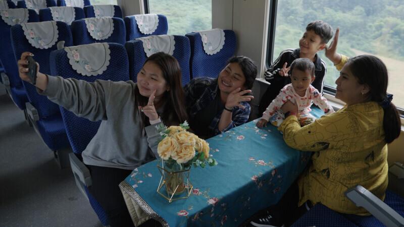 苏帕潘与同事、学生一行乘坐中老铁路前往中国。
