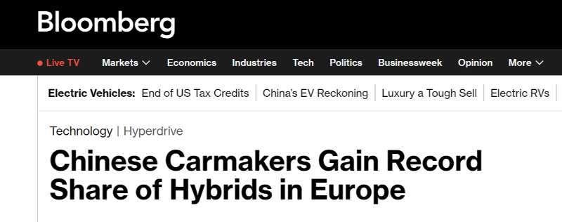 根据研究机构Dataforce发布的数据,今年8月,中国汽车在欧洲混合动力汽车销量中的份额达到创纪录的9.8%。彭博社10月2日的报道指出,这标志着中国车企在混合动力汽车这一对消费者和制造商日益重要的领域持续迈进。