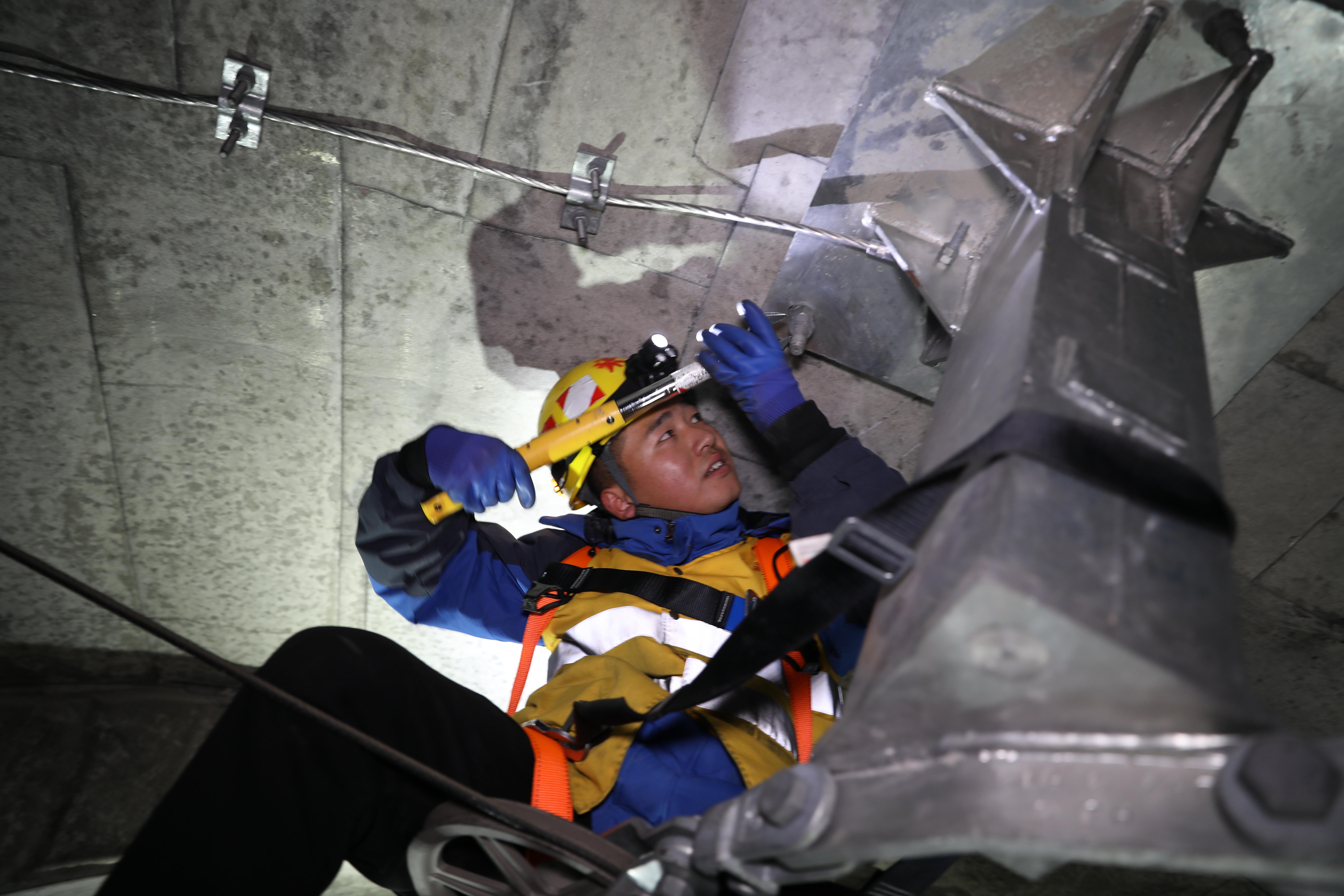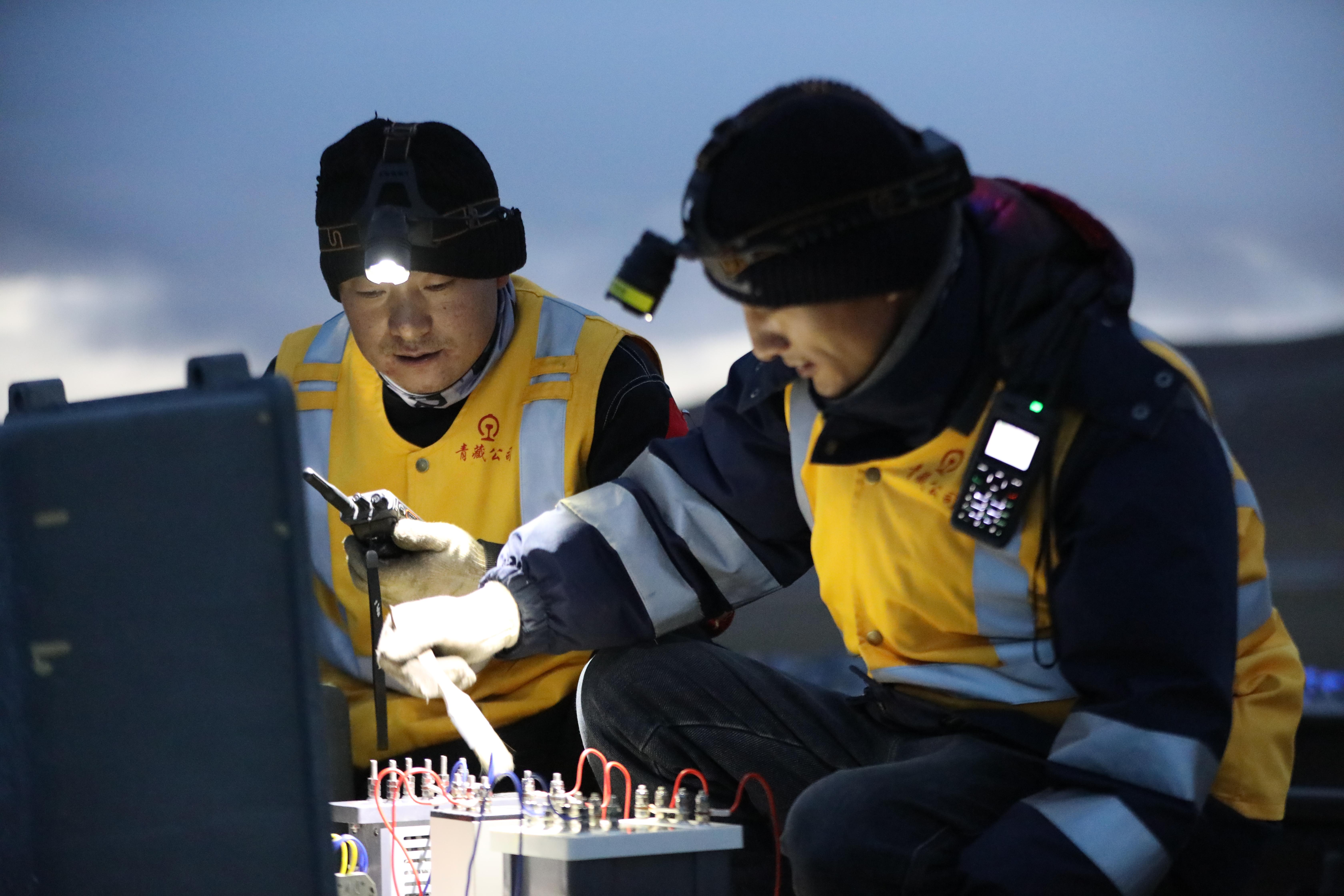 与此同时,在海拔4000多米的火车隧道旁,另一场守护正在上演。变配电专修工区副工长登增次仁正带领工友,背着沉甸甸的工具包,攀爬在陡峭的护坡上。寒风如刀,他们的脚步却无比坚实。