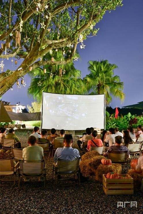 游客们在园区观看星空电影(央广网发 魏继才 摄)