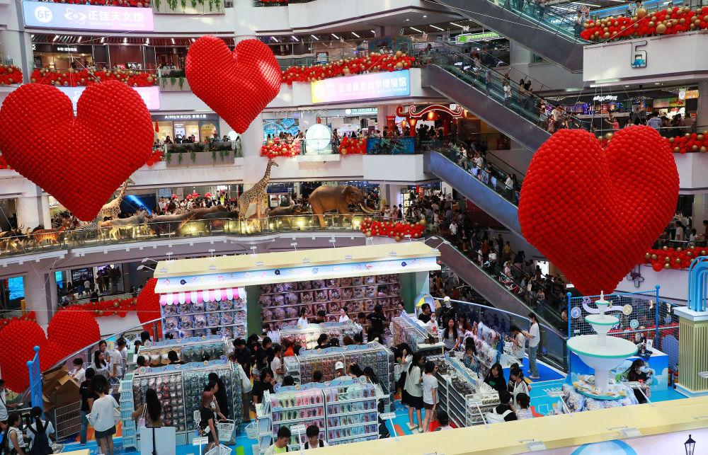 国庆假期,广州市正佳广场通过特色装饰迎接市民和游客进场消费。新华社记者 王瑞平 摄