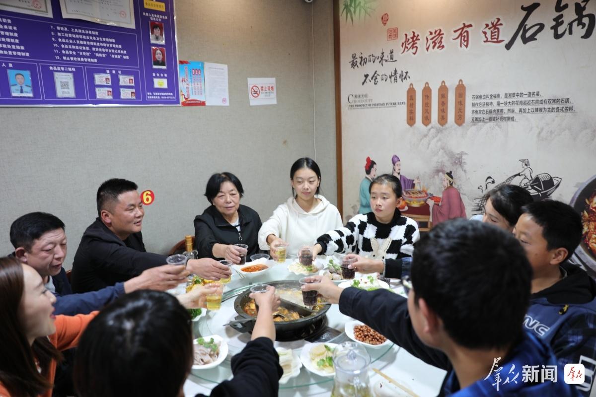 “冒雨来石泉,就是为了这口地道美味”成为众多游客的心声。双节期间,石泉美食从酒店餐馆到街头小摊全面“出圈”,构建起层次丰富的味蕾体验。秦巴老街的石锅鱼凭借鲜嫩鱼肉与秘制汤底稳居“美食顶流”,咕嘟冒泡的汤底驱散阴雨寒意;文化路的烤鱼外酥里嫩,搭配本地酸辣泡菜,成为游客必点招牌美食;街头的炒馍、烤面筋、麻辣烫等小吃摊前,排队时常绵延数十米,游客手捧热食小吃穿梭在古街巷弄,烟火气十足。除了美味小吃,石泉的特色饮品与伴手礼同样受欢迎。古色古香的茶舍里,清香柚子茶为游客舒缓旅途疲惫;文创店里,石锅鱼造型冰箱贴、印有“石泉十美”的手机壳等产品,成为游客带走“石泉记忆”的首选。