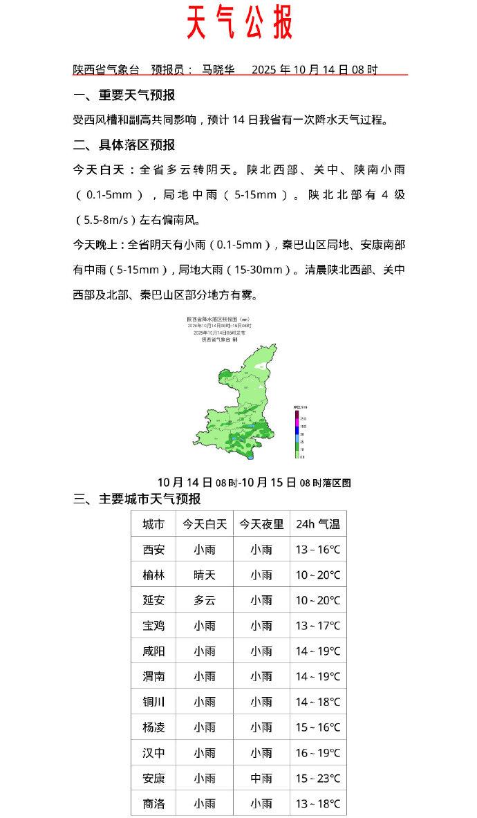 陕西省气象台10月14日08时
