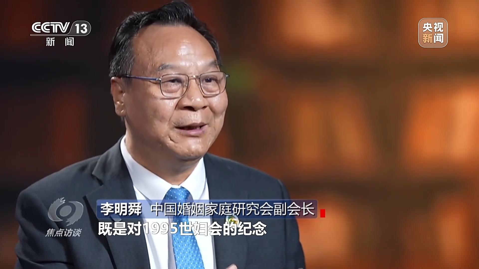 中国婚姻家庭研究会副会长 李明舜:习主席这次的讲话既是对1995世妇会的纪念,又是对全球妇女,特别是妇女全面发展未来的一种塑造和引领。