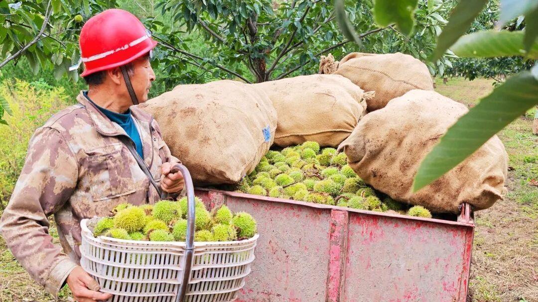 “我们通过技术培训、专业指导等方式,让种植户对毛栗子进行精细化管护,有效推动毛栗子产量与品质双提升。同时在采摘期,镇政府联合镇林场、派出所等单位组建‘护秋巡逻队’,确保果实应收尽收。预计今年年产量900吨,年产值突破540万元,带动300余户农户实现稳定增收。”镇二级主任科员张惠斌说。