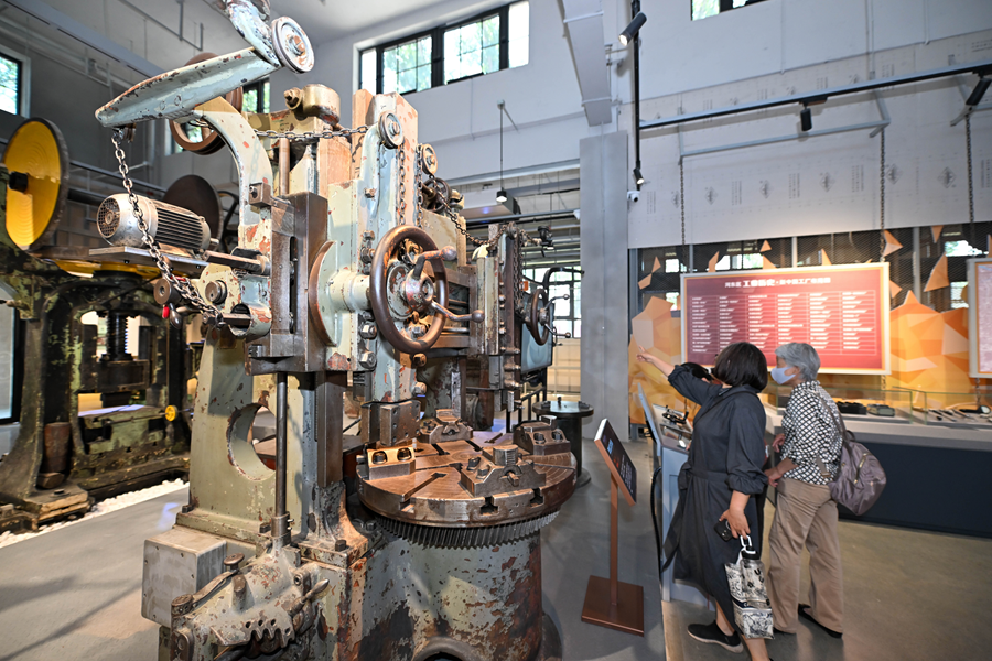 2025年5月18日,游客在天津机床工业博物馆内参观机床设备。新华社记者 孙凡越 摄