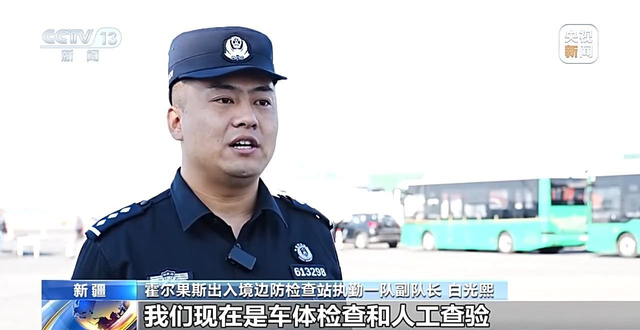 霍尔果斯出入境边防检查站执勤一队副队长 白光熙:我们现在车体检查和人工查验放到一起的,通关速度从最原先的15分钟缩短至5分钟。