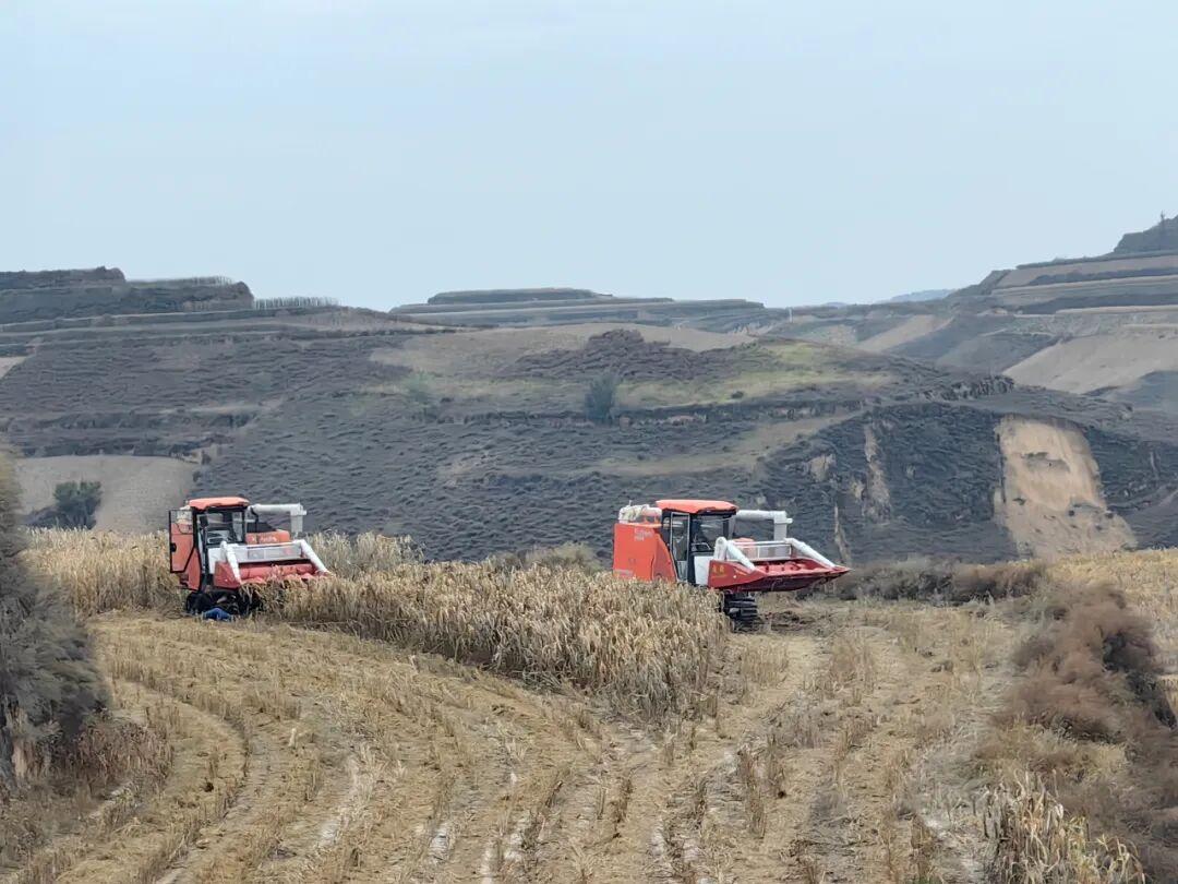 金秋时节,走进榆阳区上盐湾镇尹家庄村,层层梯田披上“金装”,沉甸甸的谷穗压弯了秸秆,空气中弥漫着谷物的清香。眼下正值谷子成熟收割的关键时期,田间地头一台台履带式收割机来回穿梭,轰鸣声此起彼伏,奏响了山地丰收的欢快乐章。