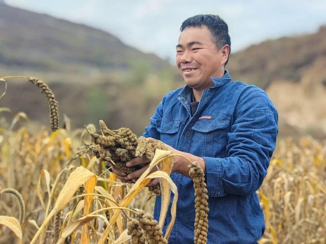 “今年种植的品种是‘陕谷一号’,主要特性是抗旱,米的品质好。相对来说,传统的小米熬一次粥用一碗米,我们用半碗就够了,稠稀度是一样的。我们的米香,熬出来的粥上面会飘着一层油,口感非常好,非常细腻。”刘建军说。