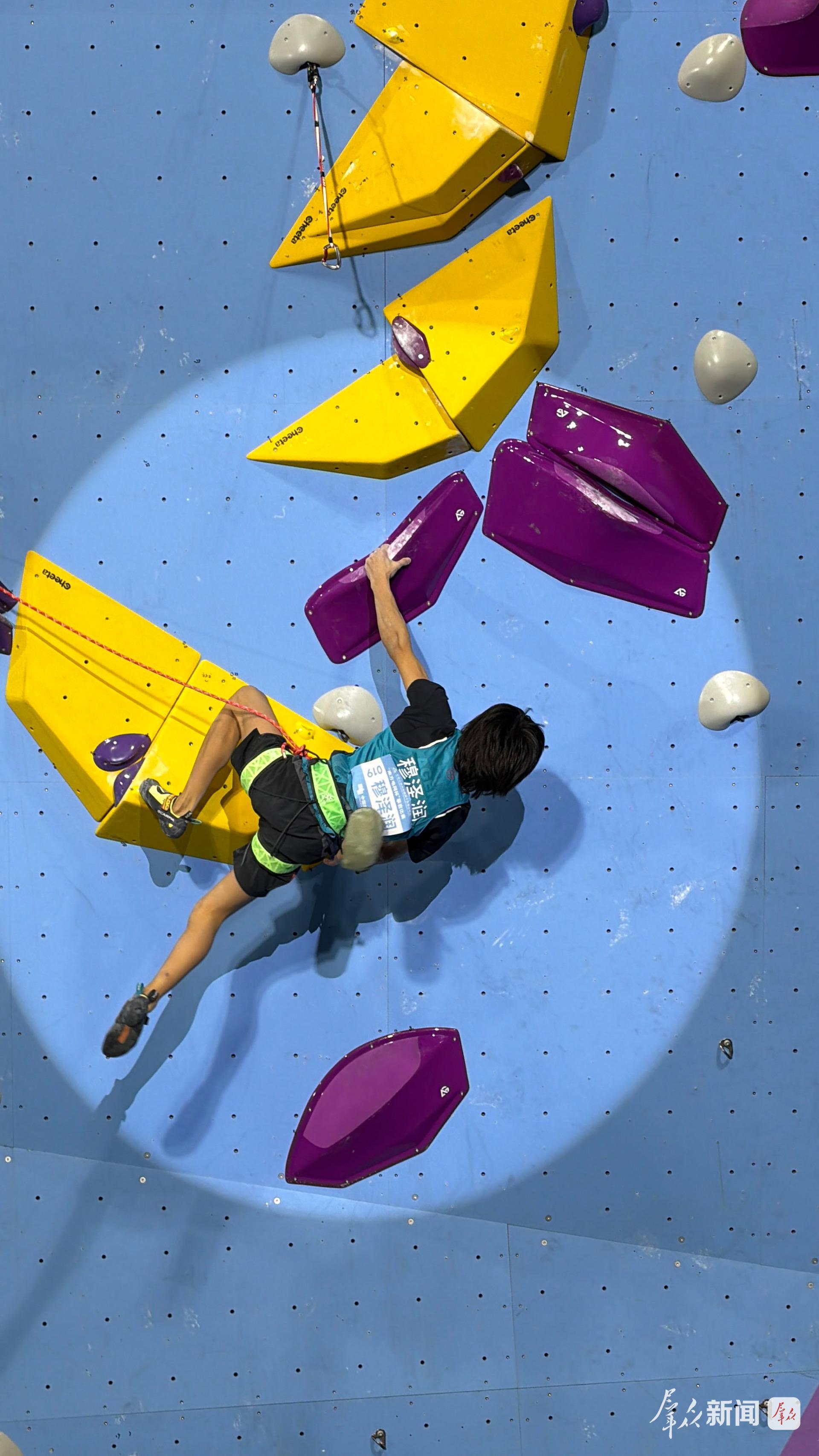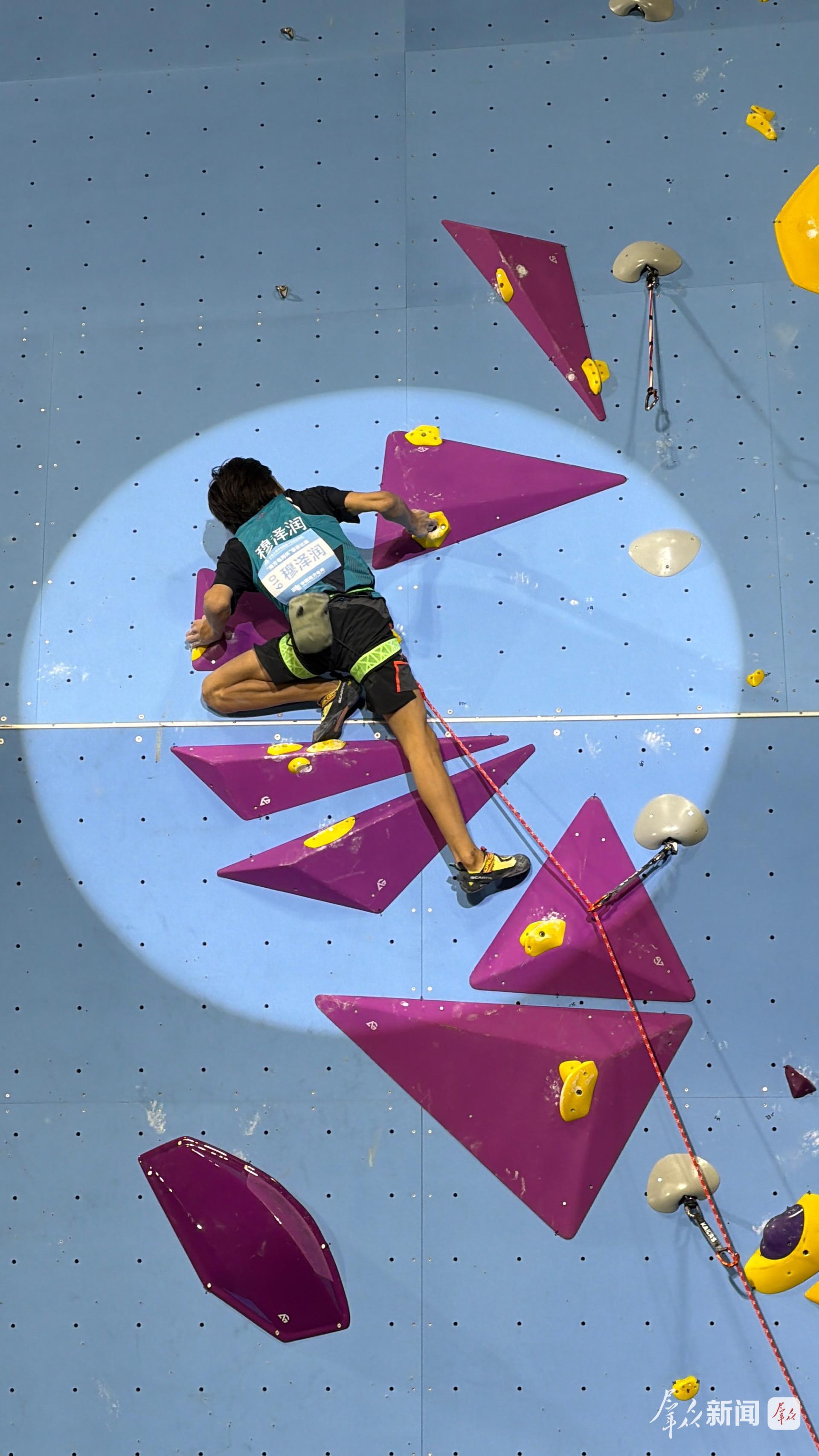 “我对自己今天的表现很满意,到最后几个岩点时确实已经爬不动了。我还年轻,我会继续努力,刻苦训练,不断挑战新高度。”穆泽润赛后接受采访时说。