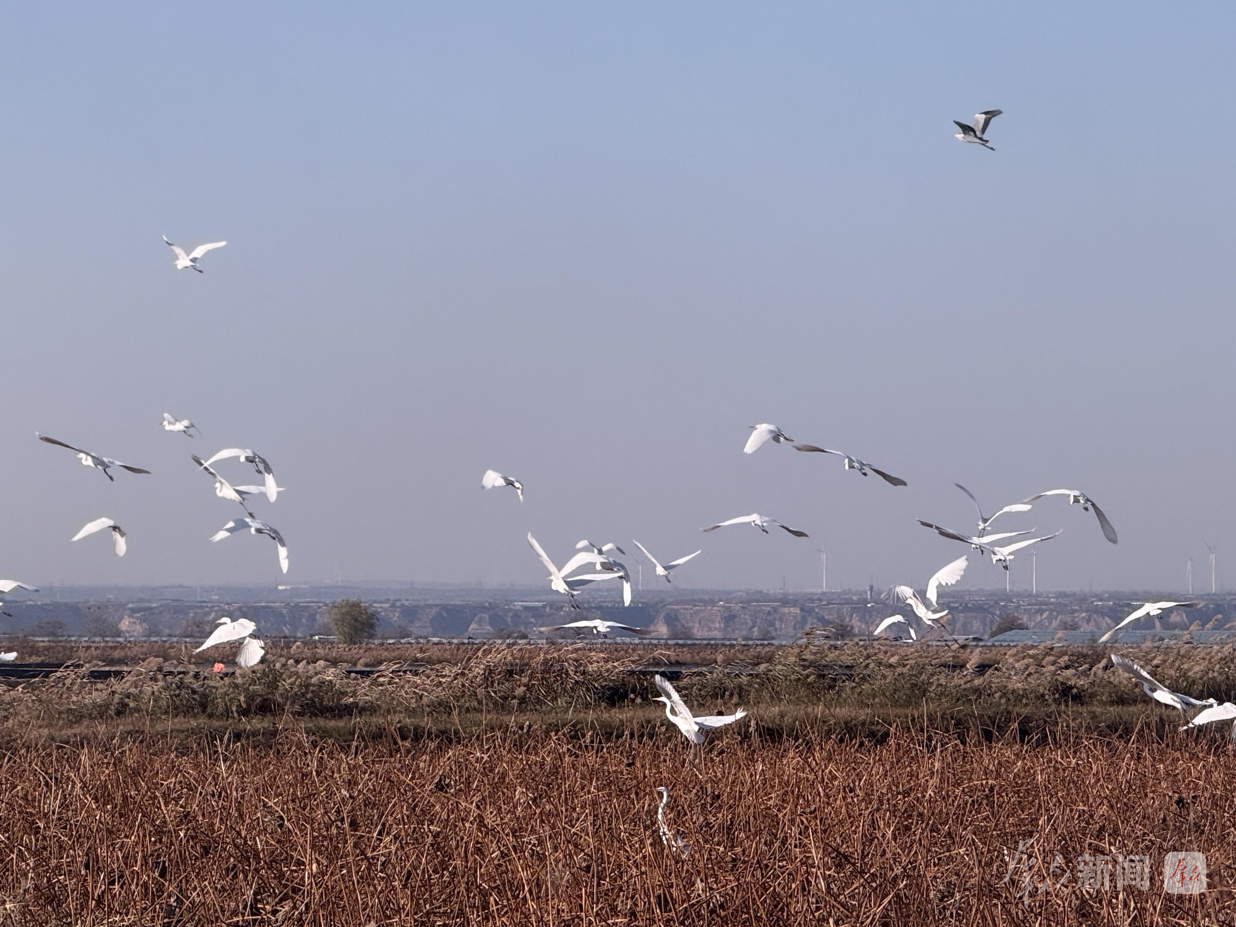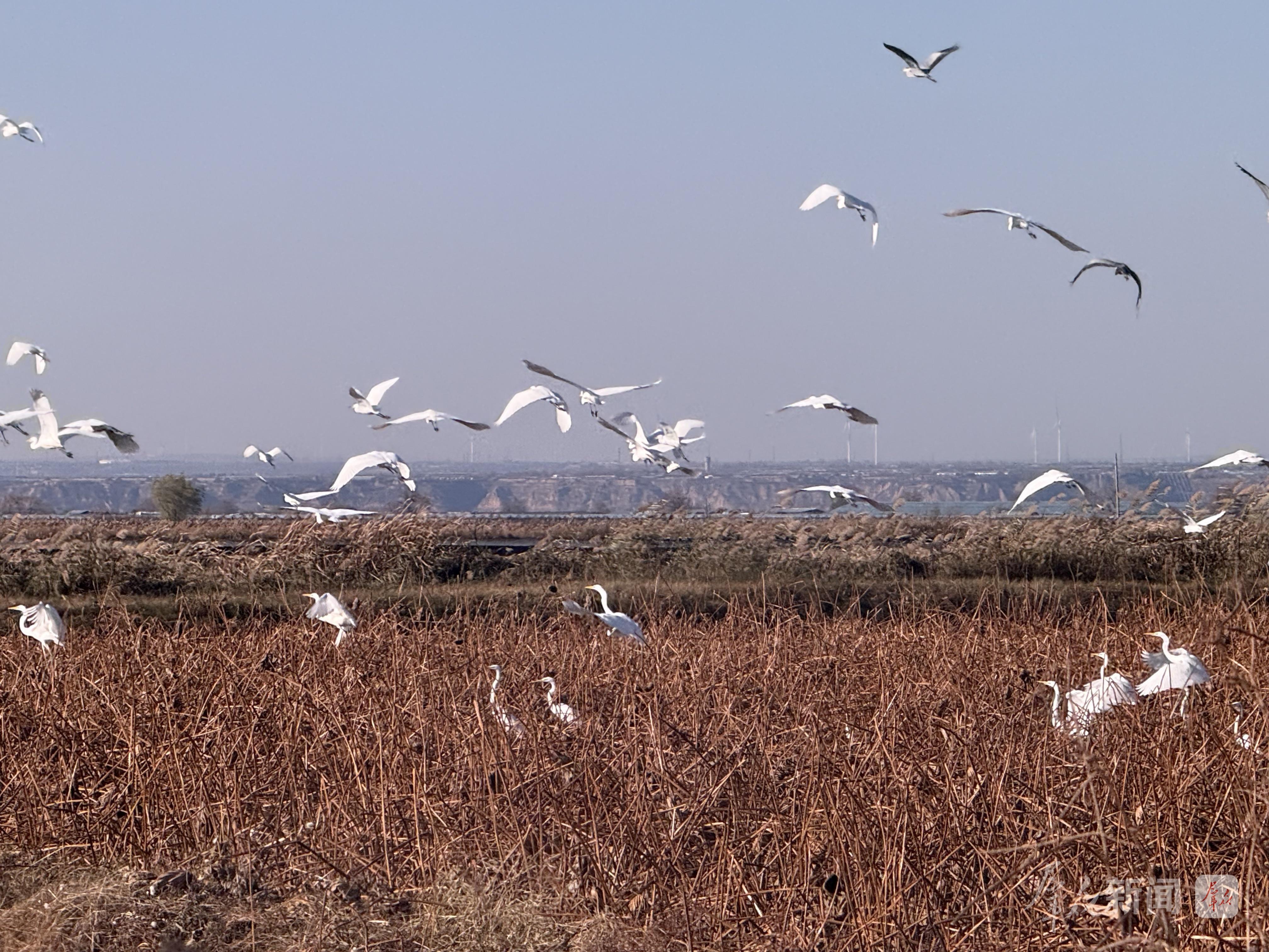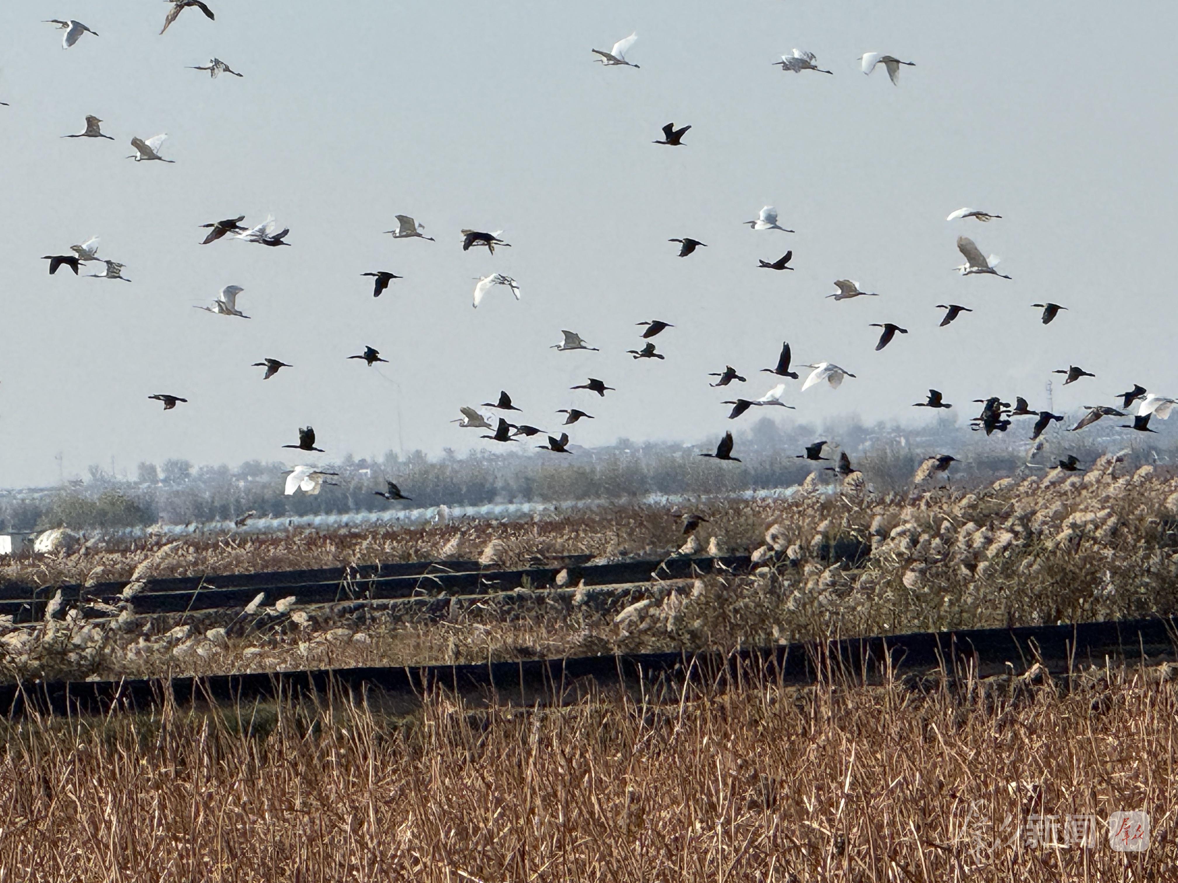 11月18日,初冬的陕西黄河湿地省级自然保护区大荔段迎来了候鸟迁徙高峰,成千上万只灰鹤、白琵鹭、反嘴鹬、大白鹭、燕鸥等候鸟在此栖息、翱翔,水面上、芦苇间满是灵动身影,俨然一幅生机勃勃的“百鸟欢歌图”。据当地林业部门介绍,随着生态保护成效的逐步显现,前来当地越冬的候鸟数量逐年递增,这里已成为黄河流域候鸟迁徙路线上的重要“驿站”。(通讯员 李世居)
