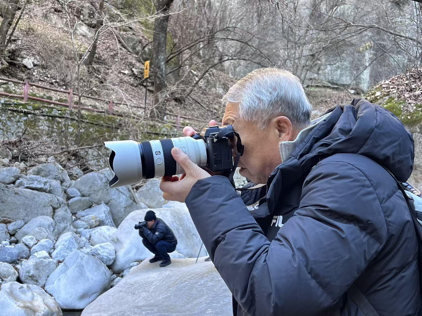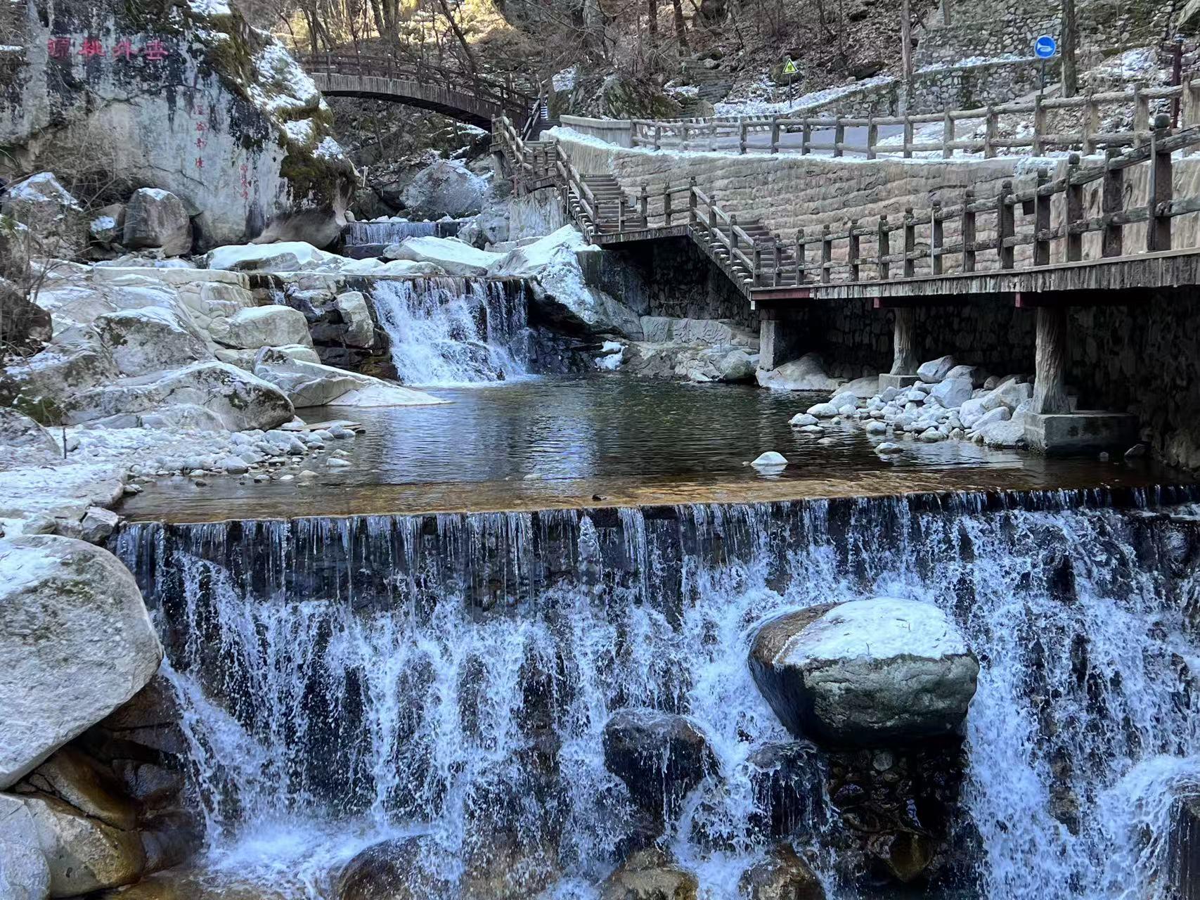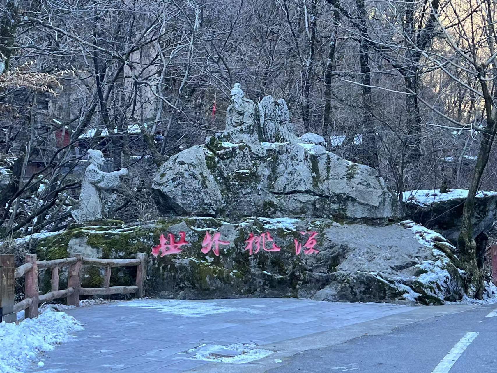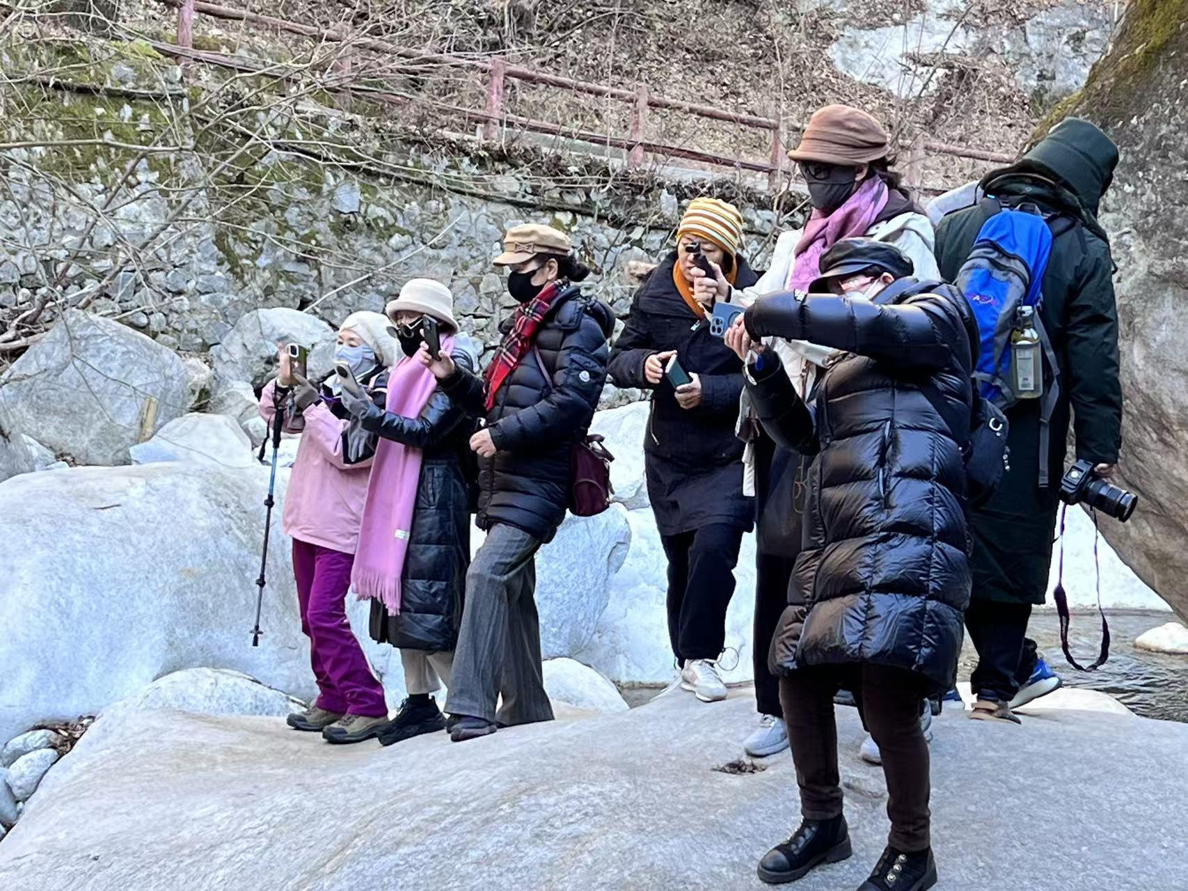 第二站来到的是世外桃源景点,这里曲径通幽,小桥流水,初冬的积雪斑驳散落在小溪旁,静静地聆听泉水叮咚的歌声。采风团成员们迫不及待地纷纷记录这世外桃源初冬的美景。