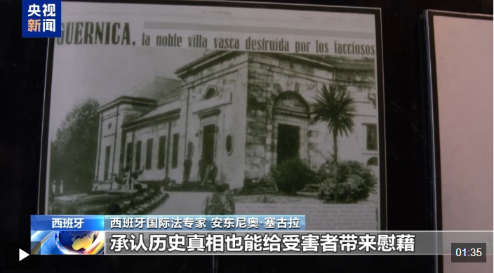 对于德国总统施泰因迈尔访问格尔尼卡小镇、并承认德国对1937年该镇遭遇轰炸负有责任一事,西班牙国际法专家在接受总台记者采访时表示,德国承认其犯下的历史罪行是积极的举措。