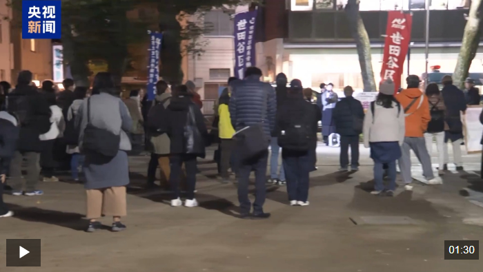 针对日本首相高市早苗近期发表的涉台错误言论,日本各地抗议集会活动接连不断。当地时间11月28日晚,一批日本民众在东京的世田谷区举行集会,要求坚持和平宪法,呼吁高市早苗撤回错误言论。