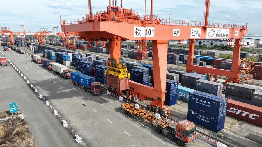 QINZHOU, Nov. 30 (Xinhua) -- The New International Land-Sea Trade Corridor (ILSTC), a key logistics route connecting western China to global markets, had transported a cumulative total of more than 5 million twenty-foot equivalent units (TEUs) of cargo as of Saturday, according to China Railway Nanning Group Co., Ltd.