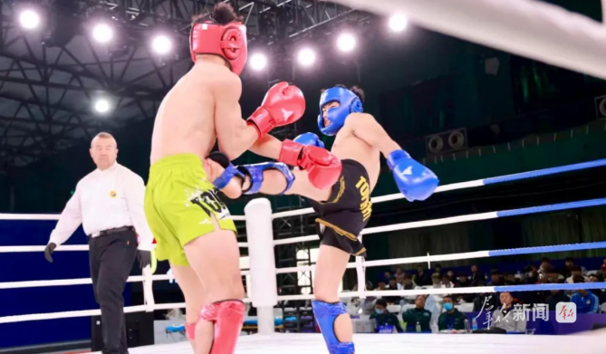 11月30日,代表陕西队参加男子57公斤级角逐的封硕在1/8决赛中表现亮眼,以巨大优势击败广东选手。“在家门口参加国家级赛事,我非常兴奋。我的主项是散打,此次跨界参赛的经历让我收获满满。”封硕说,“和之前的比赛相比,这一场比赛中我的发挥更加自如,腿法和拳法的使用思路也更加清晰。教练让我减少多余动作,争取多打重击多得分的战术,我也执行得很好,所以顺利赢下了这场比赛。”