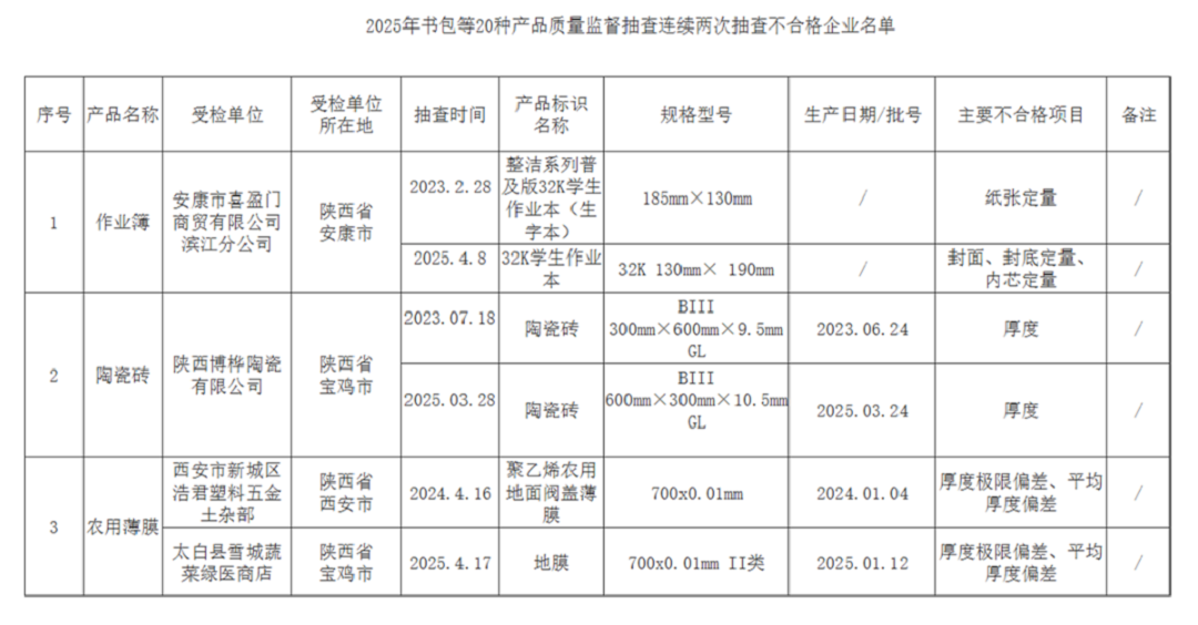 关于2025年书包等20种产品质量监督抽查情况的通告