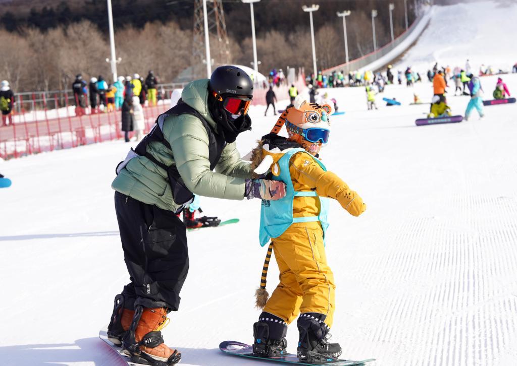 雪地飞盘、雪地龙舟、旱地冰壶……不仅仅是滑雪,不同类型的冰雪运动给放雪假的孩子们提供了丰富的选择,他们裹着厚棉服、戴着帽子和手套,尽情奔跑和嬉戏。“没有作业,也没有压力,感觉特别放松和开心!”吉林市第一实验小学校学生张潆兮说,她为自己定下“学好双板”的目标。