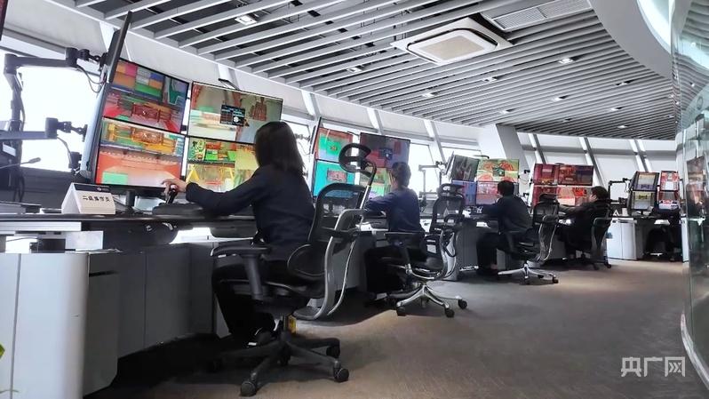 操作员在远程操控室操控作业(央广网记者 冯丽 摄)