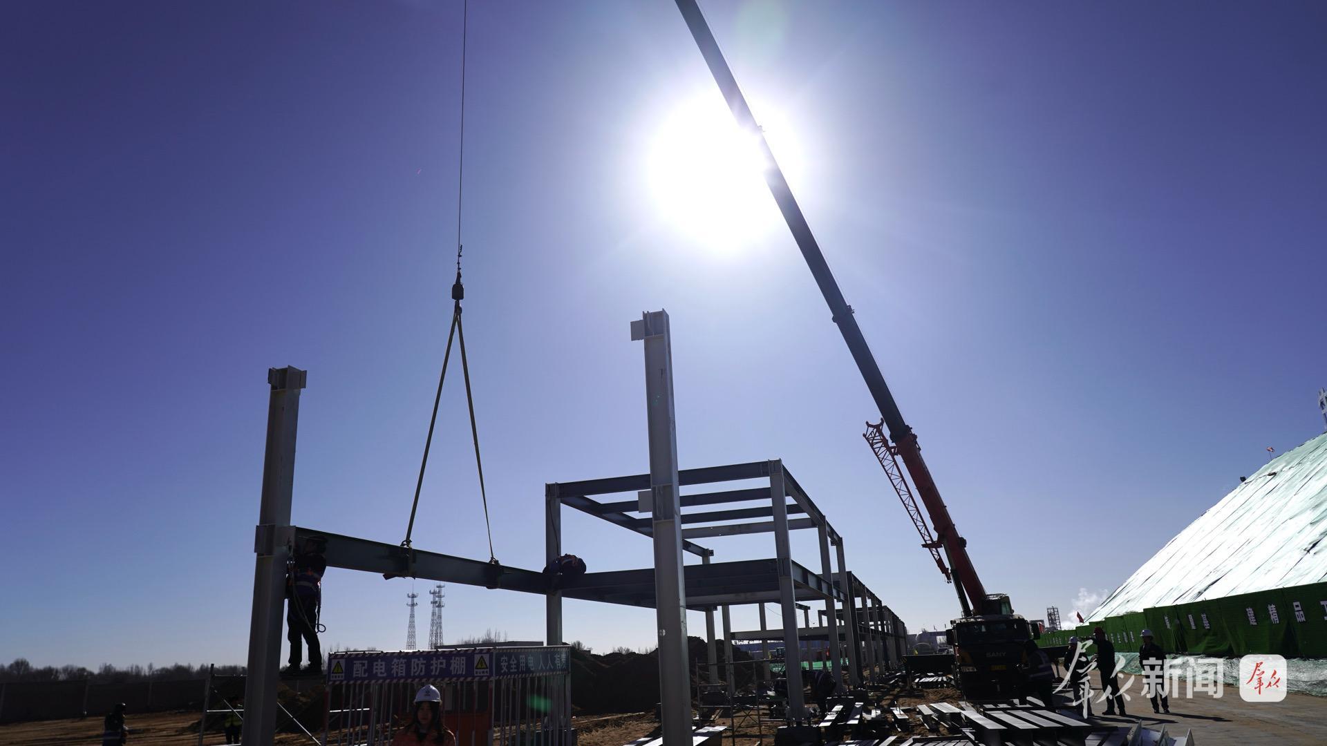 不远处的榆横工业园区榆林零碳产业园氢能(制氢)示范项目(以下简称“项目”)建设现场,氢能产业蓬勃发展的喜人场景也在上演。各类工程车辆穿行不息,1.5万平方米的主体建筑已经封顶,施工团队正在推进管廊搭建和加氢站建设。