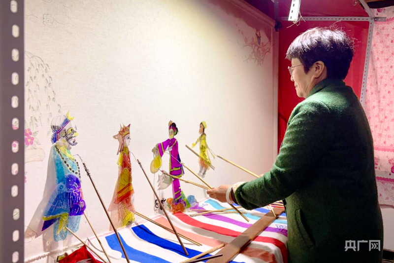 滑县德群皮影戏传承人演示《西游记·三打白骨精》片段(央广网记者 张丽娜 摄)