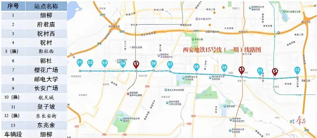 西安地铁15号线(一期)全长19.459公里。该线路未来开通后将串联起高新、长安、航天三大板块,不仅将西安地铁总里程推向422公里新高度,更凭借无人驾驶、全线深埋车站等多个亮点,成为展现西安轨道交通建设实力的标杆项目。