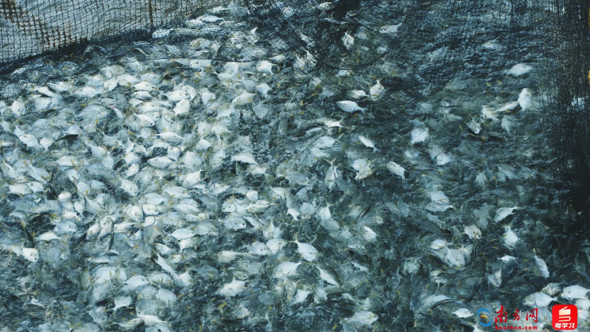 很快,海天交界处,天际线由橙转金,一轮红日跃出海面,波光粼粼的水面上仿佛撒满了碎钻。“对我们来说,日出看多了,无所谓了,也习惯了。”当记者赞叹海上日出壮美时,黄建斌笑了笑。这位曾在军营守卫的军人,如今守护的是另一种“疆土”——年产120万斤金鲳鱼的“蓝色粮仓”。