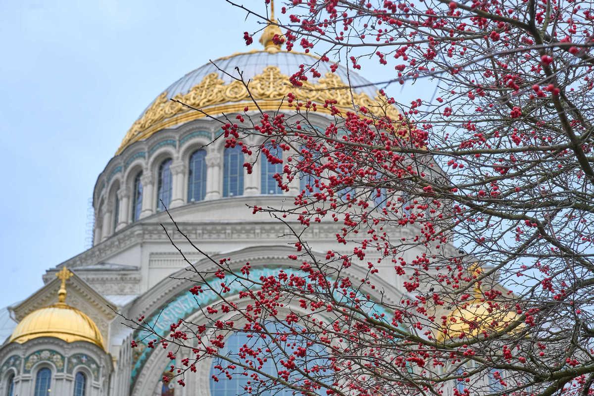 这是2025年11月30日在俄罗斯喀琅施塔得拍摄的海军大教堂。(图片来源:新华社)