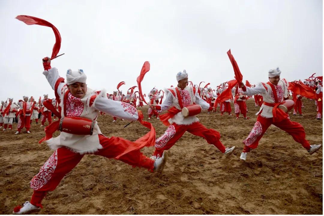安塞腰鼓演出。新华社记者 刘潇 摄