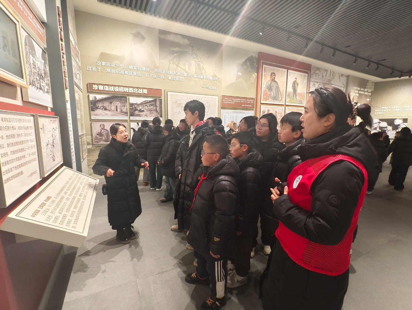 活动首站,孩子们走进位于佳县老街东拐角的红色旧址。这里留存着革命年代的珍贵印记,见证了“站在最大多数劳动人民的一面”这一重要题词的诞生,是承载着初心使命的红色教育地标。随着讲解员声情并茂地讲述,孩子们仿佛穿越到烽火岁月,深切感悟革命先辈与人民群众的鱼水深情。大家听得专注入神,眼神中满是崇敬与向往,这份跨越时空的精神嘱托,如种子般悄然播撒在孩子们的心田。
