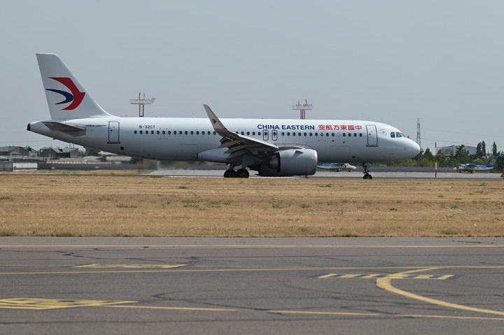 这是2025年7月16日在乌兹别克斯坦塔什干拍摄的中国东方航空公司西安至塔什干直飞航线客机。 新华社发(扎法尔摄)