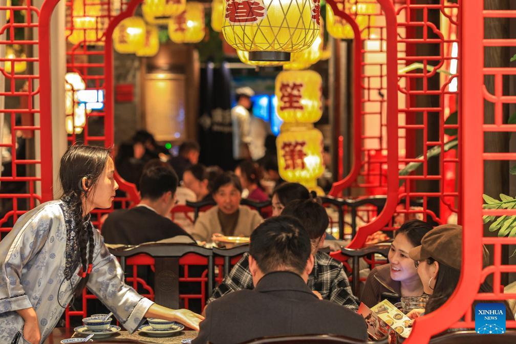 People dine at a restaurant in Nanjing, east China's Jiangsu Province, Jan. 1, 2026. China's economy kicked off 2026 with robust momentum, as evidenced by bustling economic activity in the year's first days. (Photo by Xin Yi/Xinhua)