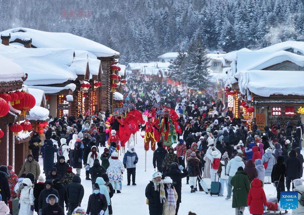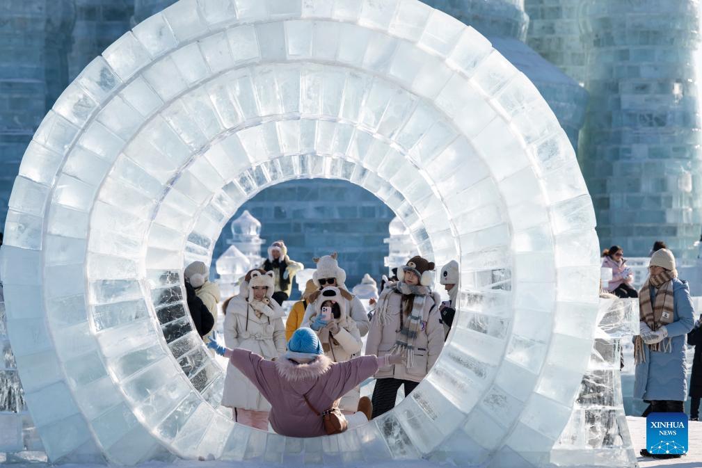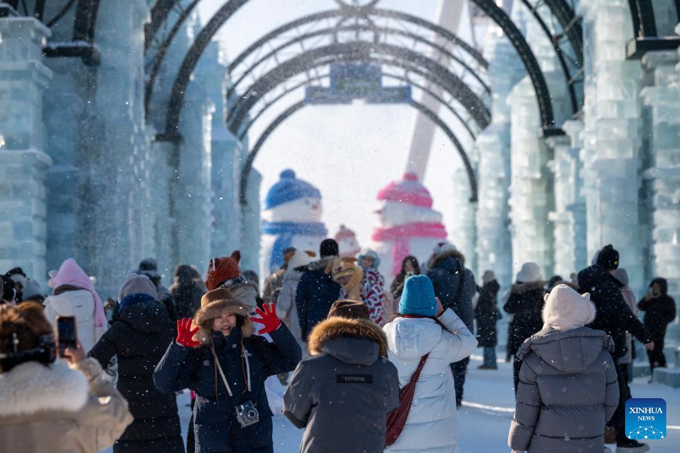 Tourists visit the Harbin Ice-Snow World in Harbin, northeast China's Heilongjiang Province, Jan. 2, 2026. China's economy kicked off 2026 with robust momentum, as evidenced by bustling economic activity in the year's first days. (Xinhua/Zhang Tao)
