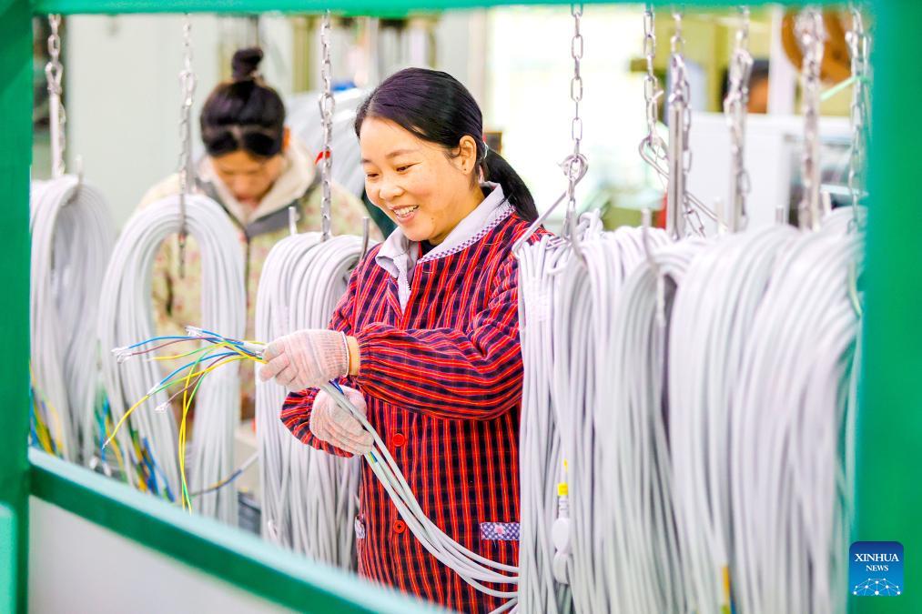 Workers make power cables at a factory in Ji'an, east China's Jiangxi Province, Jan. 2, 2026. China's economy kicked off 2026 with robust momentum, as evidenced by bustling economic activity in the year's first days. (Photo by Chen Fuping/Xinhua)