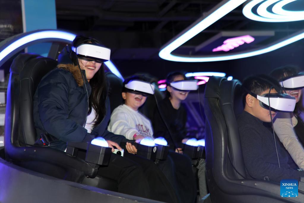 People enjoy virtual reality experience at a shopping mall in Boxing County of Bingzhou, east China's Shandong Province on Jan. 2, 2026. China's economy kicked off 2026 with robust momentum, as evidenced by bustling economic activity in the year's first days. (Photo by Chen Bin/Xinhua)