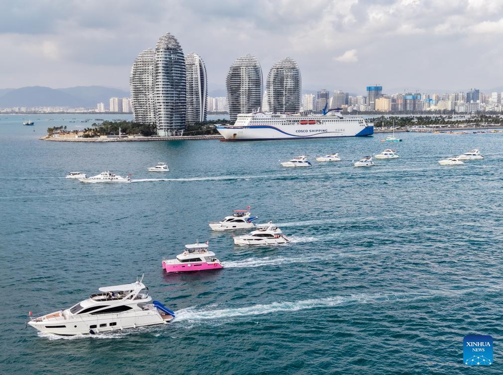 An aerial drone photo taken on Jan. 1, 2026 shows yachts in the waters near Sanya Phoenix Island in Sanya, south China's Hainan Province. China's economy kicked off 2026 with robust momentum, as evidenced by bustling economic activity in the year's first days. (Photo by Ye Longbin/Xinhua)