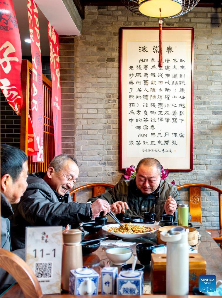 People enjoy morning tea at a time-honored restaurant in Taizhou, east China's Jiangsu Province, Jan. 2, 2026. China's economy kicked off 2026 with robust momentum, as evidenced by bustling economic activity in the year's first days. (Photo by Yang Yugang/Xinhua)
