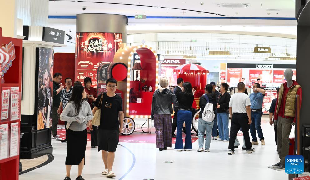 People shop at a duty-free store in Haikou, south China's Hainan Province, Jan. 1, 2026. China's economy kicked off 2026 with robust momentum, as evidenced by bustling economic activity in the year's first days. (Xinhua/Yang Guanyu)