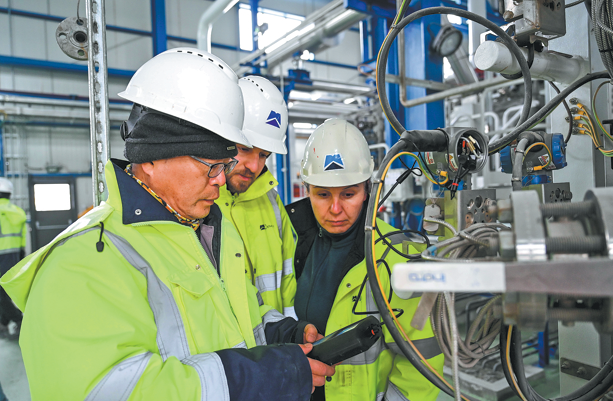 Engineers from China and Turkiye check equipment at a natural gas storage expansion project in Aksaray Province, Turkiye, on Feb 12. The project aims to enhance Turkiye's clean energy infrastructure and contribute to its economic growth. Liu Lei/Xinhua
